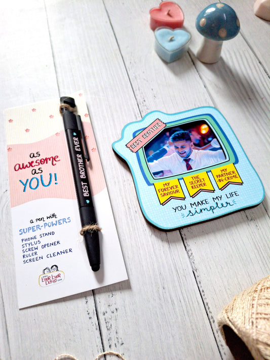 Super Power Pen and Bro Photo Magnet - Rakhi Gift for Brother